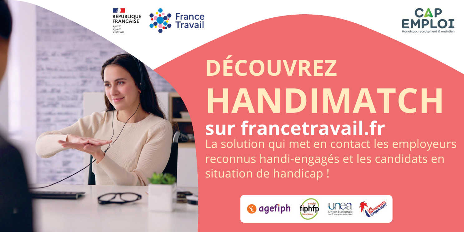 Handimatch est la solution mise en place par France Travail, Cap emploi et leurs partenaires pour favoriser l’inclusion professionnelle des personnes en situation de handicap.